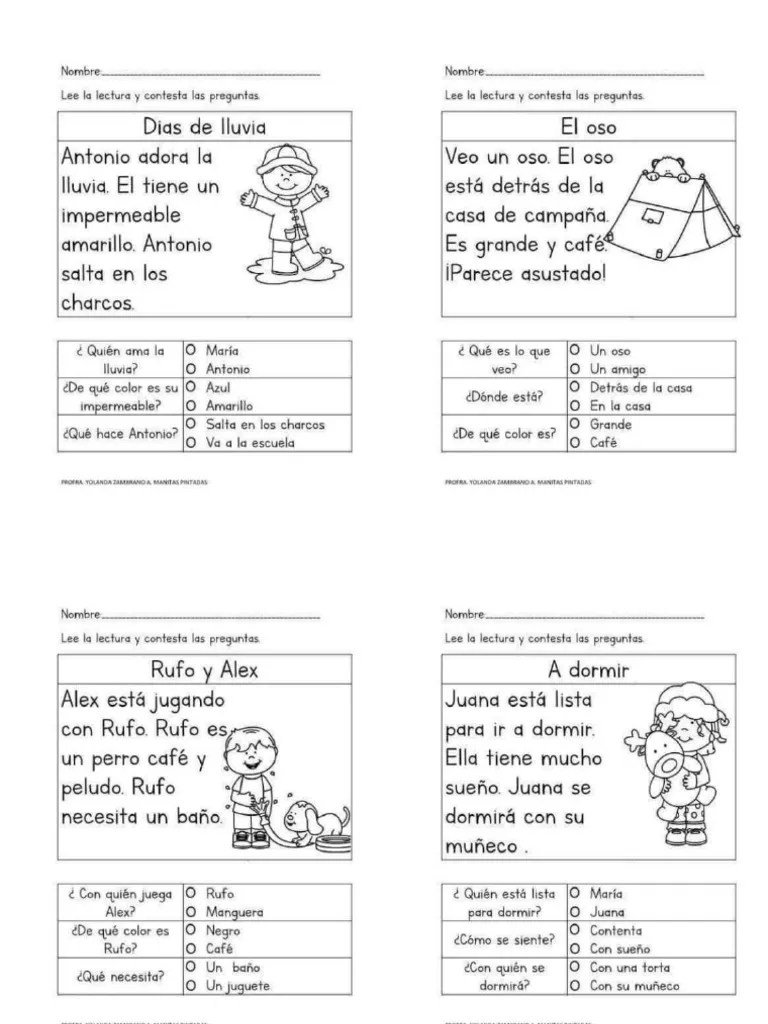 Vamos a leer cuentos cortos para niños que tienen preguntas de comprensión lectora y actividades educativas relacionadas con la lectura. A) ¿ en qué año serán las . Presta atención a la lectura de tu profesora. Lecturas cortas de comprensión para aprender a leer en primer grado, preescolar o segundo grado. Son ejercicios de comprensión lectora para . Era invierno, hacía mucho frío y todos. Hansel y gretel · lecturas cortas para niños. Por un juego que contiene preguntas sobre la lectura corta expuesta.